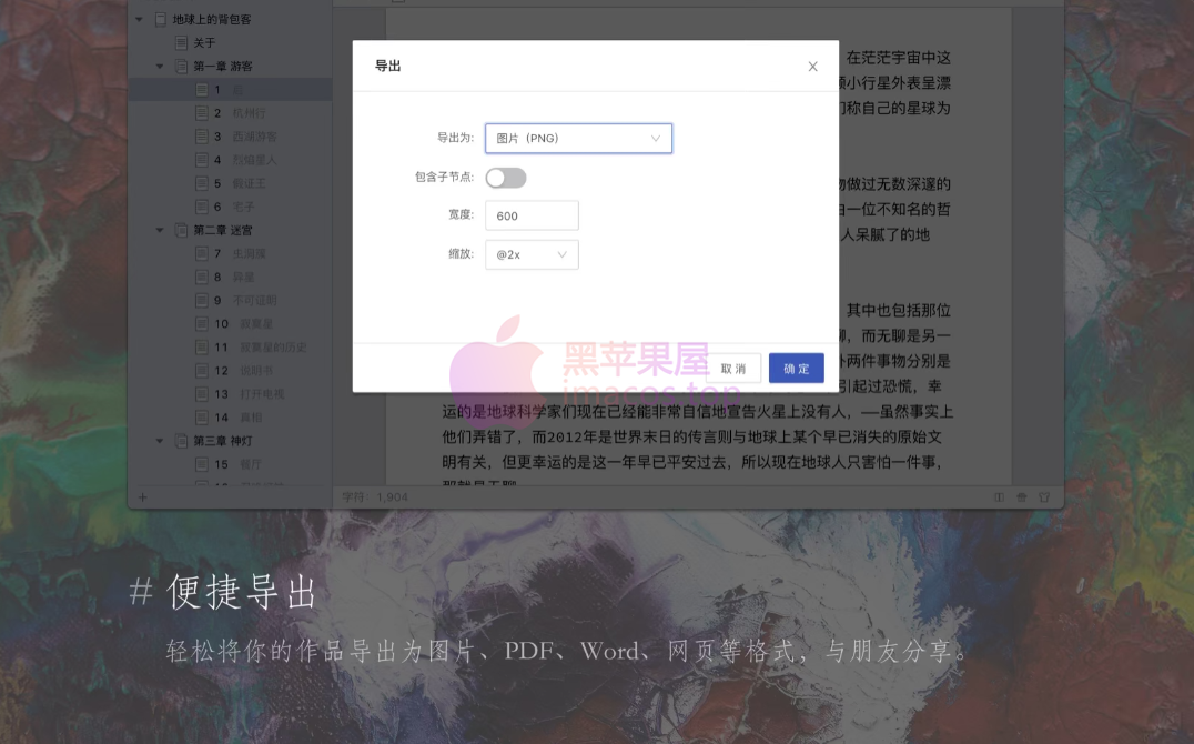 - 树状多级目录,可随意拖拽以便排序或改变嵌套关系,让长篇巨著的目录结构一目了然。