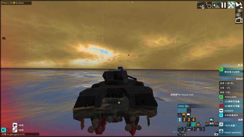 - 物理特效 -添加组件,或组件被毁都会影响载具的性能、物理特性及操控性。阻力、惯性张量、浮力和密封舱室都会因为您的载具的设计和所受伤害随时发生变化。