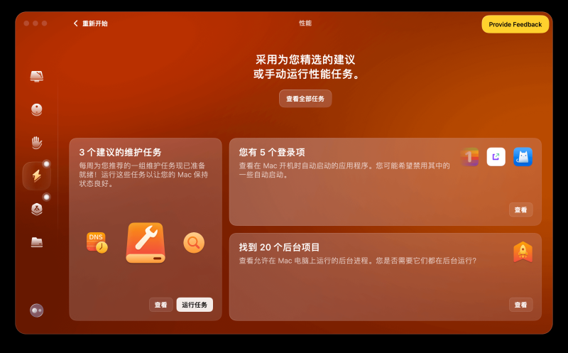 加速 Mac 速度:如果 Mac 变慢,CleanMyMac X 的优化工具可以恢复其原有速度。通过清理系统和硬盘上的垃圾文件,它帮助您的 Mac 恢复高效运行。